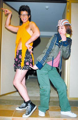 郭品超身高186公分,迷你裙穿在他身上,長度看起來又短一截,為了怕走光,他在迷你裙里套了一件泳褲。但調皮的他在現(xiàn)場當起“暴露狂”,對著大家猛掀裙子,逼得大家一看到他過來就嚇得紛紛逃跑。本來還要他穿高跟鞋,可惜他腳太大,沒有Size。