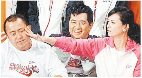 據(jù)悉,《歡樂滿東華》籌款活動(dòng)籌得8518萬(wàn)港幣。在籌款活動(dòng)進(jìn)行到一半時(shí),曾志偉見已籌得7000萬(wàn)元,有望破去年紀(jì)錄,便與幾個(gè)藝人在后臺(tái)喝起了小酒。稍后曾志偉再次登臺(tái),微醉的他先是講粗口“問候”了兩位男藝人,而后又脫丘凱敏的長(zhǎng)褲,使其尷尬露底。曾華倩阻止并警告他說:“有膽量去整阿姐(汪明荃)!”但曾志偉借酒勁又來拉曾華倩,曾華倩回頭給了曾志偉一記耳光(上圖),讓他一下子清醒了過來。
