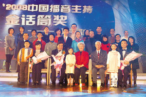 昨晚,由中國(guó)廣播電視協(xié)會(huì)、天津廣播電視電影集團(tuán)主辦,中廣協(xié)會(huì)播音主持委員會(huì)、天津電視臺(tái)、天津人民廣播電臺(tái)協(xié)辦的’2008中國(guó)播音主持“金話筒”獎(jiǎng)?lì)C獎(jiǎng)盛典在天津?qū)氎鎱^(qū)京津新城舉行。頒獎(jiǎng)晚會(huì)由央視主持人白巖松和天津電視臺(tái)主持人李宗瑤主持。