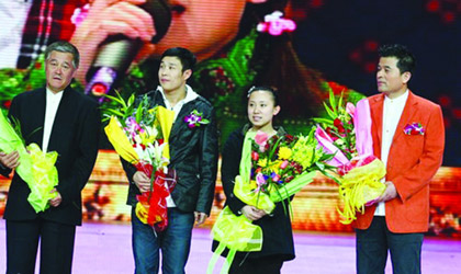 在頒獎(jiǎng)環(huán)節(jié),趙本山終于上了臺(tái),他帶著小沈陽、毛毛和畢福劍一起捧回了語言類節(jié)目的一等獎(jiǎng)。在談獲獎(jiǎng)感言時(shí),趙本山說:“今年春晚對我來說最關(guān)鍵!彼X得,最關(guān)鍵的原因有兩個(gè),一個(gè)是時(shí)間緊,“這個(gè)小品是在離春節(jié)12天的時(shí)候才弄出來的。第一個(gè)小品不夠好被斃了,我感謝斃了第一個(gè)小品,不然就沒現(xiàn)在這個(gè)了!绷硗庖粋(gè)是徒弟火了,“最興奮的是,我兩個(gè)徒弟站在舞臺(tái)上了!壁w本山笑著說。