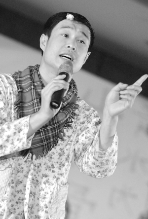 作為整場(chǎng)演出的“腕兒”,小沈陽壓軸登場(chǎng),穿著今年央視春晚上的蘇格蘭裙、背著女包亮相。他與妻子沈春陽在臺(tái)上互相打趣。說到夫妻倆回娘家被老丈人分床睡,兩人只能打呼嚕假裝說夢(mèng)話傳情的段子,令觀眾直呼笑得肚疼。演出到最高潮,小沈陽扯了段卷筒紙巾當(dāng)圍巾,還說這圍巾是“正宗真絲”的,因?yàn)椤罢婺芩骸薄kS后他“求”觀眾和演員跟他“串通”,“我一出場(chǎng)你們就拼命喊愛我”,好讓他享受一下當(dāng)大腕的滋味。然后站在三輪車上出場(chǎng),高唱“成名作”《情人》,竄下舞臺(tái)跟女觀眾擁抱,引得大家全都站起來鼓掌。
