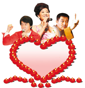 在“5·12”大地震一周年即將到來之際,5月10日上午,中央電視臺(tái)“心連心”藝術(shù)團(tuán)將在四川綿竹舉行主題為“三百六十五個(gè)祝!钡拇笮臀繂栄莩。目前,已經(jīng)有成龍、趙本山、宋祖英等近百位明星踴躍報(bào)名,表示將免費(fèi)參演。