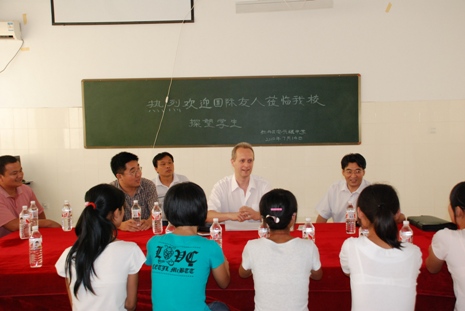 中新網(wǎng)7月15日電 據(jù)菏澤市僑聯(lián)消息,7月14日,德國中國教育資助工程協(xié)會主席托馬斯·費爾和中國駐法蘭克?傤I(lǐng)館前領(lǐng)事譚華訓一行,在菏澤市僑聯(lián)副主席盧文朋、張忠的陪同下,到牡丹區(qū)安興鎮(zhèn)中學和鄄城縣彭樓鎮(zhèn)兩所中學進行助學考察。