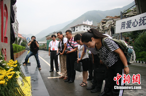 中新網(wǎng)北川8月17日電 (南若然)17日上午9時(shí)許,中國(guó)僑聯(lián)組織160余人來(lái)到北川縣城地震遺址,祭奠長(zhǎng)眠地下的五一二地震北川縣城遇難者。