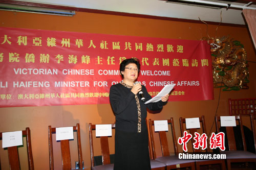 中新社墨爾本10月28日電 (記者 朱大強(qiáng))中國國務(wù)院僑辦主任李海峰28日晚在墨爾本僑界舉行的歡迎宴會(huì)上表示,國務(wù)院僑辦是中國政府主管僑務(wù)工作的職能部門,將密切與海外華僑華人的聯(lián)系,支持海外僑胞生存發(fā)展。