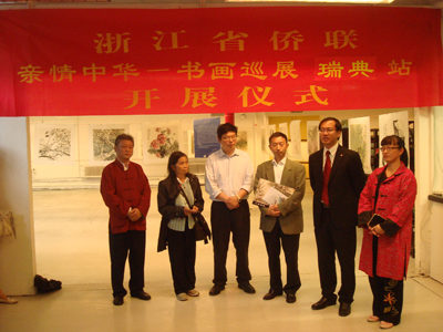中新網(wǎng)9月11日電 在新中國成立60周年之際,應瑞典瑞京華人協(xié)會、丹麥中華工商聯(lián)合協(xié)會、挪威浙江華人華僑聯(lián)誼總會等僑團的邀請,8月21日至9月2日,浙江省僑聯(lián)聯(lián)合浙江省逸仙書畫院,在浙江省僑聯(lián)黨組成員、秘書長張維仁帶領(lǐng)下,組織省內(nèi)知名畫家和瑞安、諸暨僑聯(lián)主席等一行6人赴瑞典、丹麥、挪威開展以“親情中華——書畫巡展”為主要內(nèi)容的文化交流訪問。