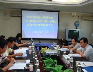 “歸僑僑眷關(guān)愛工程”是國務(wù)院僑辦于2008年在全國僑辦系統(tǒng)開展實(shí)施的一項(xiàng)民心工程,旨在通過協(xié)調(diào)、溝通、服務(wù)等多渠道,多形式關(guān)心歸僑僑眷的生產(chǎn)生活,為困難歸僑僑眷排擾解難;顒(dòng)實(shí)施一年多來,已成為全國僑辦系統(tǒng)關(guān)注民生、構(gòu)建和諧社會(huì)的品牌工程!