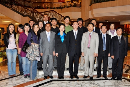董中原說,今年是中韓兩國建交17周年,中韓自1992年建交以來,兩國關(guān)系迅速全面發(fā)展。雙方高層交往頻繁,政治互信不斷深化,經(jīng)貿(mào)合作持續(xù)擴大,人文交流方興未艾,“韓流”、“漢風(fēng)”交相輝映,兩國人民之間的相互理解和友誼不斷加深。中韓兩國地理相鄰、文化相近,民間交流在兩國關(guān)系中扮演著重要角色,雙方開展的豐富多彩的文化交流活動,拉近了兩國人民之間的感情和距離。頻繁活躍的人員往來,使得中韓民間交流與合作充滿活力,呈現(xiàn)出多渠道、全方位和形式多樣的特點!爸腥A情-韓中情·歡聚首爾”大型晚會的舉辦將為增進兩國人民傳統(tǒng)友誼、加強兩國文化交流產(chǎn)生積極和深遠的影響,衷心祝愿晚會圓滿成功。