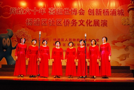 中新網(wǎng)10月26日電 10月21日下午,“輝煌六十年喜迎世博會(huì)創(chuàng)新楊浦城”——上海市楊浦區(qū)社區(qū)僑務(wù)文化展演活動(dòng)在楊浦區(qū)文化館舉行。上海市僑辦副主任陳文佳,副區(qū)長馬杰富,區(qū)委統(tǒng)戰(zhàn)部副部長、區(qū)政府僑辦主任胡耀良,區(qū)僑聯(lián)主席曹國強(qiáng)等出席活動(dòng)。社區(qū)歸僑僑眷及(僑界人士)代表近500人參加活動(dòng)。
