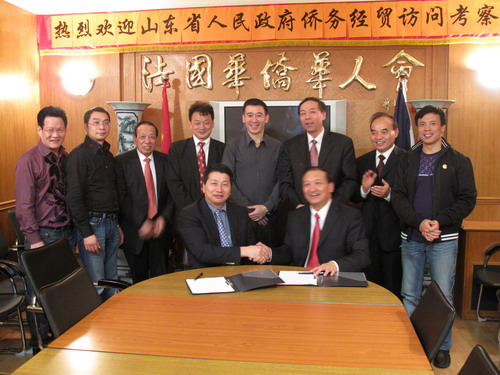 雙方一致同意,今后進一步加強信息交流,互相支持,開展實質性合作。山東省海外交流協(xié)會副會長史進與華僑華人會會長陳勝武在友好關系協(xié)議書上簽字。