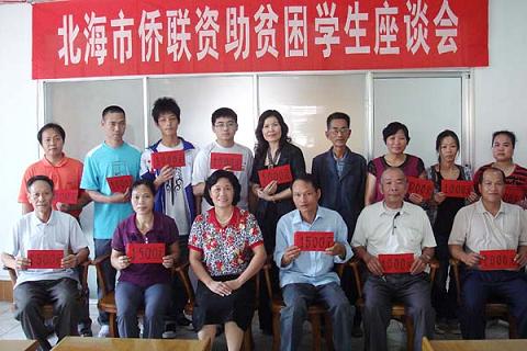 中新網(wǎng)11月2日電 10月24日上午,廣西自治區(qū)北海市僑聯(lián)召開今年的第三次資助貧困學(xué)生座談會(huì),為官澤嬋、張遠(yuǎn)寧、廖丹丹3名貧困大學(xué)生和許程程等10名貧困中學(xué)生,分別資助每人每學(xué)年1500元和1000元,當(dāng)天共計(jì)發(fā)放由廣西僑聯(lián)華僑愛心基金會(huì)海內(nèi)外華人華僑、企業(yè)家和愛心人士捐助的助學(xué)金14500元。