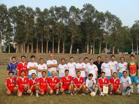 在商務(wù)考察之余,該團(tuán)與鶴華中學(xué)教師足球隊(duì)進(jìn)行了一場(chǎng)友誼賽,在鶴華中學(xué)足球場(chǎng)上交流切磋了球藝,促進(jìn)了彼此情誼。