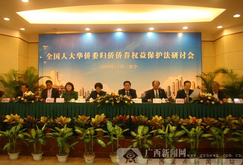 11月18日到20日,全國人大華僑委在廣西南寧召開全國人大華僑委歸僑僑眷權(quán)益保護(hù)法研討會(huì)。來自全國31省區(qū)市及深圳、廈門、青島市人大僑委的負(fù)責(zé)同志和廣西涉僑部門負(fù)責(zé)同志等共120余人參加了該次會(huì)議。