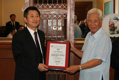 中新網(wǎng)11月25日電 據(jù)山東省僑辦消息, 11月23日,山東省僑務(wù)訪問團拜訪了中國駐菲律賓宿務(wù)領(lǐng)事館,與總領(lǐng)事何時敬舉行了座談,并向領(lǐng)事館贈送了紀念品。隨后訪問團前去拜會了宿務(wù)菲華商會,該會理事長林倫超及各位理事熱情接待了訪問團一行。