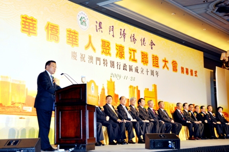 中新網(wǎng)11月25日電 據(jù)中國僑聯(lián)網(wǎng)站消息,11月23日至24日,由澳門歸僑總會主辦的“2009華僑華人聚濠江聯(lián)誼大會”在澳門舉行。中國僑聯(lián)主席林軍,國務院僑辦副主任許又聲以及來自世界56個國家和地區(qū)的華僑華人代表以及內地僑界嘉賓共1000多人應邀出席。澳門特別行政區(qū)行政長官何厚鏵到會講話,中央人民政府駐澳門聯(lián)絡辦副主任徐澤、外交部駐澳門特派員盧樹民等到會祝賀。