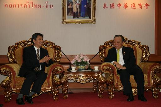 中新網(wǎng)11月27日電 據(jù)山東省僑辦消息,11月25日,山東省僑務(wù)訪問(wèn)團(tuán)赴泰國(guó)中華總商會(huì)拜訪?偵虝(huì)副主席陳振志、劉暹有以及常務(wù)會(huì)董、會(huì)董、總干事等與訪問(wèn)團(tuán)見(jiàn)面。座談會(huì)后,雙方互贈(zèng)紀(jì)念品,中國(guó)駐泰王國(guó)大使館僑務(wù)參贊左志強(qiáng)陪同拜訪。
