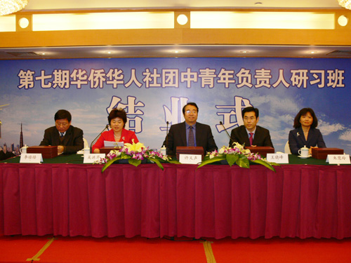 許又聲代表國務(wù)院僑辦和國僑辦主任李海峰對學(xué)員圓滿完成學(xué)業(yè)表示熱烈祝賀,對承辦本期“研習(xí)班”的浙江省僑辦表示感謝,對學(xué)員們認(rèn)真研習(xí)、學(xué)有所成表示贊賞。許又聲勉勵學(xué)員們站在新的起點(diǎn)上更加努力工作,積極探索,切實(shí)提高社團(tuán)工作的管理水平和領(lǐng)導(dǎo)能力,提出五點(diǎn)殷切希望:一是改進(jìn)會務(wù),增強(qiáng)僑團(tuán)凝聚力和生命力;二是加強(qiáng)團(tuán)結(jié),促進(jìn)僑社可持續(xù)發(fā)展;三是合作共贏,促進(jìn)僑社與住在國社會和睦相融;四是因地制宜,大力傳播和弘揚(yáng)中華文化;五是聚同化異,為推動兩岸和平發(fā)展發(fā)揮更大作用。