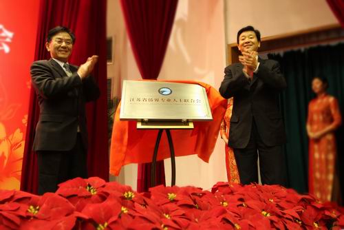 王永樂、張衛(wèi)國為江蘇省僑界專業(yè)人士聯(lián)合會揭牌。