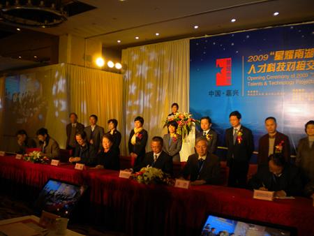 中新網(wǎng)12月9日電 據(jù)浙江僑聯(lián)網(wǎng)消息,12月4日至6日,浙江省嘉興市舉行2009“星耀南湖”人才科技對(duì)接交流會(huì)。為貫徹落實(shí)浙江省委“兩創(chuàng)”總戰(zhàn)略和支持嘉興市引資引智工作,浙江省僑聯(lián)發(fā)揮人才集聚的優(yōu)勢(shì),組織30余位高層次海歸人士赴嘉興考察參觀,并進(jìn)行項(xiàng)目對(duì)接。浙江省僑聯(lián)主席吳晶赴嘉興,出席了2009“星耀南湖”人才科技對(duì)接交流會(huì)開(kāi)幕式。