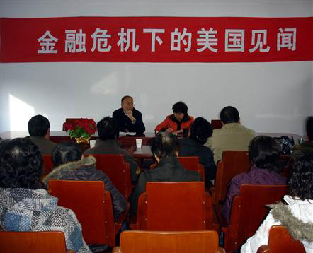 中新網(wǎng)12月10日電 據(jù)連云港市僑聯(lián)消息,近日,連云港市僑聯(lián)邀請(qǐng)剛從美國(guó)探親歸來的連云港市新華僑華人、留學(xué)人員眷屬聯(lián)誼會(huì)副會(huì)長(zhǎng)蘆旭,作了一場(chǎng)《金融危機(jī)下的美國(guó)見聞》專題講座。各縣區(qū)僑聯(lián)負(fù)責(zé)人,市僑聯(lián)機(jī)關(guān)干部及歸僑僑眷代表50余人參加。