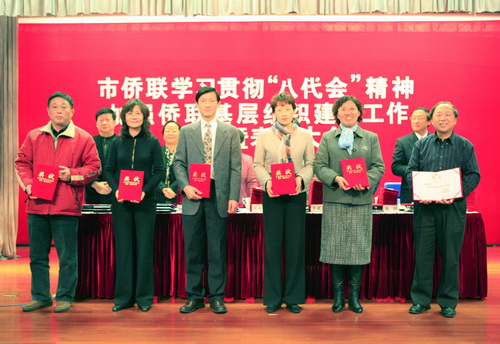 中新網(wǎng)12月11日電 據(jù)上海市僑聯(lián)消息,12月8日下午,上海市僑聯(lián)在長(zhǎng)寧區(qū)圖書(shū)館禮堂召開(kāi)市僑聯(lián)學(xué)習(xí)貫徹“八代會(huì)”精神加強(qiáng)僑聯(lián)基層組織建設(shè)工作交流暨表彰大會(huì)。中國(guó)僑聯(lián)副主席、市政協(xié)副主席、市僑聯(lián)主席吳幼英,市僑聯(lián)黨組書(shū)記李葳萍等出席大會(huì),頒發(fā)2009年區(qū)縣僑聯(lián)優(yōu)秀調(diào)研報(bào)告獎(jiǎng),并為優(yōu)秀聯(lián)絡(luò)員和第三批“特色僑之家”頒獎(jiǎng)、授牌。