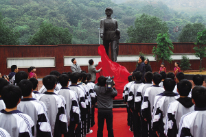 由浙江省溫州市部分僑胞捐贈的價值60多萬元的雷鋒銅像12月10日上午在溫州華僑職業(yè)中等專業(yè)學校落成揭幕。