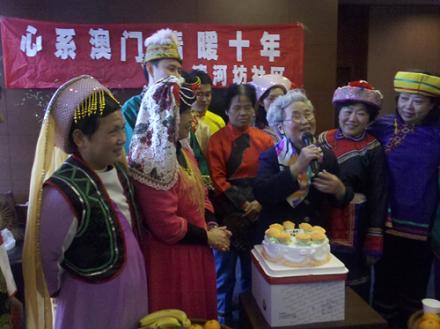 中新網(wǎng)12月28日電 據(jù)浙江僑聯(lián)網(wǎng)消息,12月20日是澳門回歸祖國(guó)十周年紀(jì)念日,浙江省杭州市上城區(qū)社區(qū)僑眷潘曼霞受澳門工會(huì)聯(lián)合總會(huì)邀請(qǐng)將遠(yuǎn)赴澳門參加澳門回歸十周年慶典活動(dòng)。12月15日中午,清河坊社區(qū)為僑眷潘曼霞舉行了歡送會(huì)。