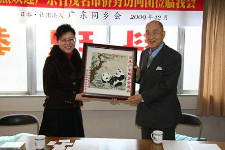 在日本訪問調(diào)研期間,僑務(wù)訪問團(tuán)受到了日本廣東同鄉(xiāng)會的熱情接待。除會長陸煥鑫先生因公事出國訪問外,該會名譽會長郭少東、顧問李國松、副會長朱銘江、副會長潘創(chuàng)始率十幾位理、干事在會館迎候會見,召開歡迎會,雙方進(jìn)行了熱情友好的交流。梁紅健在會上介紹了茂名經(jīng)濟(jì)社會發(fā)展情況,同時向該會贈送了茂名投資指南、茂名特式的南玉鎮(zhèn)紙以及富有中國特色的刺繡工藝品。朱銘江介紹了日本廣東同鄉(xiāng)會的總體情況,并向訪問團(tuán)回贈了“吉祥虎”紀(jì)念品。會后廣東同鄉(xiāng)會備了豐盛的午宴熱情款待僑務(wù)訪問團(tuán),席間鄉(xiāng)情濃郁,追今撫昔,無所不談,令人深感同胞情熱、鄉(xiāng)情寶貴。訪問廣東同鄉(xiāng)會后,訪問團(tuán)隨后走訪了居住日本橫檳、京都和大阪的旅日僑胞和留學(xué)日本學(xué)生,對茂名市旅日僑胞情況有了進(jìn)一步的了解。