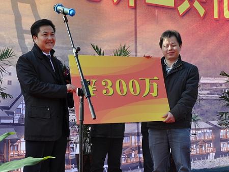 中新網(wǎng)12月31日電 據(jù)青田縣發(fā)展和改革局消息,12月28日,浙江省青田縣高市旅游接待中心舉行開(kāi)工典禮。中國(guó)僑聯(lián)副主席、寧夏回族自治區(qū)僑聯(lián)主席、浙江省僑聯(lián)青年總會(huì)榮譽(yù)會(huì)長(zhǎng)朱奕龍為開(kāi)工典禮剪彩,并為高市村新農(nóng)村建設(shè)個(gè)人捐贈(zèng)300萬(wàn)元,青田縣領(lǐng)導(dǎo)王通林、楊雷、葉選君、陳海民、呂大德、舒志勇及縣相關(guān)職能部門(mén)代表參加了儀式。