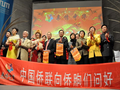 中新網(wǎng)1月6日電 據(jù)中國(guó)外交部網(wǎng)站消息,2010年1月3日晚,中國(guó)僑聯(lián)組織的“親情中華”藝術(shù)團(tuán)歐洲之行首場(chǎng)演出在德國(guó)慕尼黑舉行。慕尼黑總領(lǐng)事馬晉生和夫人劉霞、領(lǐng)館館員及慕尼黑工業(yè)大學(xué)副校長(zhǎng)孟麗秋、巴州華商會(huì)、僑學(xué)界、中資機(jī)構(gòu)和一些德國(guó)友人約800人觀看演出。