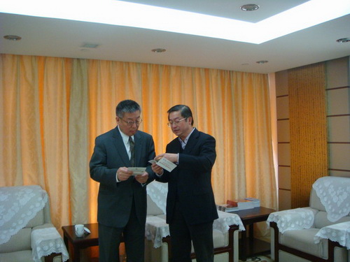 老朋友相見,格外高興。胡思源向崔明華介紹了紐約州立大學(xué)在08年8月支助150名大學(xué)生赴美學(xué)習(xí)的情況,以及此次帶領(lǐng)紐約州立大學(xué)校長老師和200位美國學(xué)生赴四川地震災(zāi)區(qū)進行學(xué)習(xí)交流等情況。