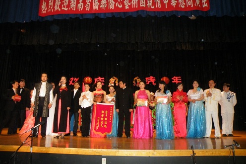 在近3個(gè)小時(shí)的演出中,湖南省僑聯(lián)僑心藝術(shù)團(tuán)先后表演了23個(gè)節(jié)目,包括合唱、獨(dú)唱、服飾表演、小品、舞蹈等。其中《洞庭魚米鄉(xiāng)》曾獲中國音樂金鐘獎(jiǎng)首屆合唱比賽金獎(jiǎng)第一名、獲2008年第5屆世界合唱比賽銀獎(jiǎng)!