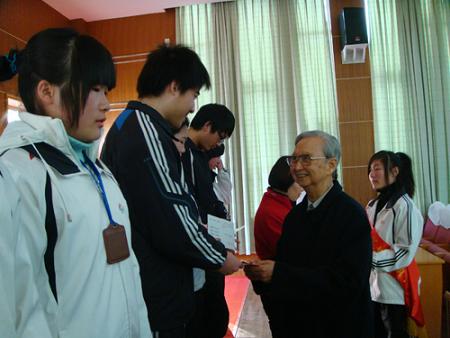 包景表先生親手將獎(jiǎng)學(xué)金交到學(xué)生手中,并鼓勵(lì)他們發(fā)奮努力,早日成才。獲獎(jiǎng)學(xué)生表示:不會(huì)辜負(fù)包先生的殷切期望,將會(huì)用自己的實(shí)際行動(dòng)立足專業(yè)、刻苦學(xué)習(xí)、面向社會(huì)、勵(lì)志成才、報(bào)效祖國(guó)。最后全體獲獎(jiǎng)學(xué)生和包先生合影留念。