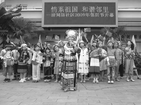這次澳門回歸10周年,潘曼霞夫婦倆再次受到了邀請,潘曼霞由大女兒陪同,參加澳門十周年慶典。這次,老人再次帶去了嶄新的28套民族服裝。當(dāng)澳門勞工子弟學(xué)校的學(xué)生們再次穿上潘曼霞新帶來的28套民族服裝,為老人載歌載舞,歡迎老人時,老人也很開心。