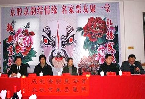 中午十一時,大會程序進行完畢,帷幕剛落,京劇的鑼鼓聲,琴聲齊聲啟鳴,將慶典活動推向高潮。精彩的京劇演唱表演開始,來自區(qū)、市、省和各地的41名京劇演唱名家一個接一個,一腔換一腔,腔腔調調,鏗鏘有力,京劇唱腔交響著鑼鼓的強烈節(jié)奏,震撼了整個大廳,響徹王宅村僑聯活動中心的上空。
