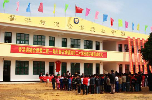 通過廣西自治區(qū)僑辦牽線搭橋,捐助支持廣西各項公益事業(yè)的僑社和慈善團體中,香港道德會較為突出。香港道德會是香港有名的慈善機構(gòu),2009年先后在廣西欽州市欽南區(qū)新營村、賀州市八步區(qū)東南村、岑溪市地麻村、陸川縣清耳村等地,捐建4所小學(xué),捐贈總額達172萬元人民幣。這些受捐建的小學(xué)有個響亮的名字:“香港道德會僑愛教學(xué)樓”。