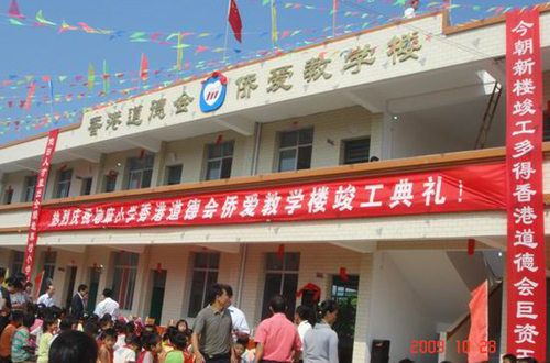 這4所“僑愛小學(xué)”項目于2009年5月份陸續(xù)開工建設(shè),于2010年1月前全部竣工驗收,并舉行了氣氛熱烈的落成典禮。另外,香港道德會還給這4所小學(xué)的1432名學(xué)生和教師贈送新的衣物。師生們在即將到來的春季新學(xué)期將可以穿上新校服、新鞋子在寬敞明亮的新教學(xué)樓里上課學(xué)習(xí)。