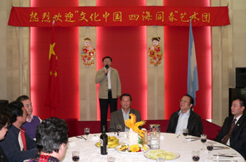 “文化中國(guó)•四海同春”赴南美藝術(shù)團(tuán)團(tuán)長(zhǎng),國(guó)僑辦副主任馬儒沛說(shuō),“今晚是慶功晚宴,也是送別晚宴,心情特別復(fù)雜。這幾天的慰?jī)S演出中,得到了使館的大力支持。這次在阿根廷演出比較特別,華僑華人的參與面比較廣,反響比較強(qiáng)烈。阿根廷站是承上啟下的一站,我們將和巴西僑胞一起分享阿根廷的成功!