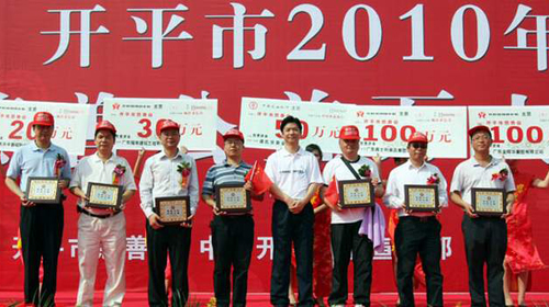 3月3日,開平市在城市廣場舉行2010年慈善公益萬人行活動起步儀式,同時表彰了一批慈善活動作出突出貢獻的海外僑胞、港澳同胞和海外社團。據(jù)悉,今年以來,該市慈善會共收到來自海外鄉(xiāng)親、社團的捐款1366萬多元,其中海外鄉(xiāng)親捐款達1297萬元,涌現(xiàn)旅港鄉(xiāng)親譚逢敬先生捐款800萬元,譚華正先捐款200萬元等一批突出貢獻的熱心人士。開平市委書記馮立堅在慈善公益萬人行活動上,接受了海外僑胞和港澳鄉(xiāng)親熱心人士支票捐贈儀式,并代表開平市慈善會向譚氏宗親會、香港開平同鄉(xiāng)會、澳門開平同鄉(xiāng)會。旅港鄉(xiāng)親譚逢敬、譚華正、梁家熹、譚福添、吳漢良、譚錦濠、譚景彬、譚凱銘等善長仁翁頒發(fā)慈善紀念牌匾予以表彰。