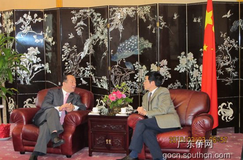 高占生對(duì)訪問團(tuán)的到來表示熱烈歡迎,對(duì)廣東省僑辦多年來的海外僑務(wù)工作深表贊賞,并就吳銳成提出的相關(guān)問題做了分析,提出了看法和建議,同時(shí)還就組織華僑華人回國看世博、看亞運(yùn)、社團(tuán)回鄉(xiāng)舉辦年會(huì)等進(jìn)行了具體的商談。