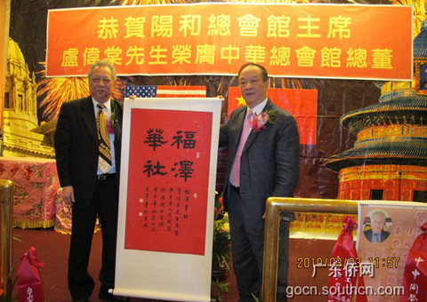 在就職儀式上,吳銳成代表廣東省僑辦對(duì)盧偉棠先生接任中華總會(huì)館總董表示熱烈的祝賀。吳銳成贊揚(yáng)盧偉棠先生從事僑社服務(wù)工作三十多年來(lái),為社團(tuán)的發(fā)展和團(tuán)結(jié),為爭(zhēng)取華社的權(quán)益和福祉等方面作出的貢獻(xiàn),并向盧偉棠先生贈(zèng)送了大幅題詞“福澤華社”。