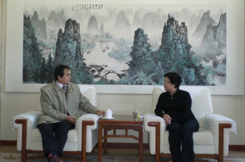 姚迪雄回顧了十多年來與國(guó)務(wù)院僑辦的密切交往,對(duì)僑辦多次支持其在華舉辦大型巡回畫展表示衷心感謝。他向李海峰贈(zèng)送了畫作《天馬圖》,并簡(jiǎn)要介紹了將于4月開始在國(guó)內(nèi)山東、內(nèi)蒙古和甘肅等省(區(qū))舉辦其個(gè)人巡回畫展的情況。