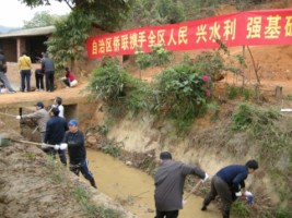 這次冬修水利勞動(dòng),是廣西壯族自治區(qū)僑聯(lián)積極響應(yīng)廣西壯族自治區(qū)黨委、自治區(qū)人民政府號(hào)召的一次主題實(shí)踐活動(dòng)。當(dāng)日,一到勞動(dòng)現(xiàn)場(chǎng),廣西僑聯(lián)主席韋干身先士卒,帶頭跳入2米深的水渠里,帶領(lǐng)大家迅速投入到勞動(dòng)中去。工地上,廣西僑聯(lián)會(huì)旗和“自治區(qū)僑聯(lián)攜手全區(qū)人民興水利,強(qiáng)基礎(chǔ),惠民生”橫幅迎風(fēng)飄揚(yáng),大家情緒高漲,干勁十足,有的鏟淤泥、搬石塊,有的鋤雜草、修整渠面……,有人身上濺滿了泥漿也全然不顧。
