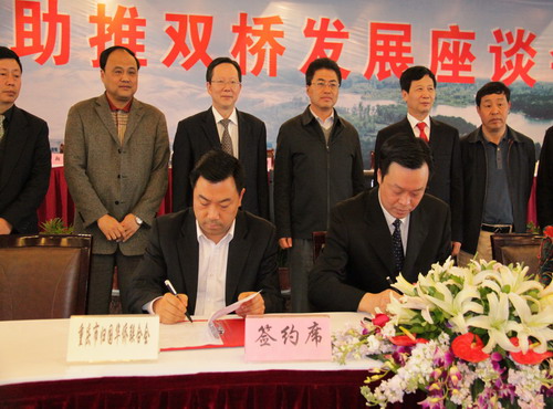 重慶市僑聯(lián)副主席徐萬(wàn)忠代表市僑聯(lián)與雙橋區(qū)人民政府代表分別在戰(zhàn)略合作協(xié)議上簽字。