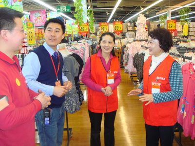 在超市負責(zé)人的帶領(lǐng)下,全體黨員分別在服飾區(qū)、生鮮區(qū)、果蔬區(qū)、停車場進行了3個小時的服務(wù)體驗活動。