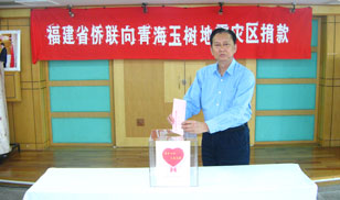 中新網(wǎng)4月22日電 據(jù)福建僑聯(lián)網(wǎng)消息,天災(zāi)無情,人間有愛。4月21日上午,福建省僑聯(lián)積極響應(yīng)福建省委組織部、省直機(jī)關(guān)工委的號召,舉行了向青海玉樹地震災(zāi)區(qū)捐款的儀式。