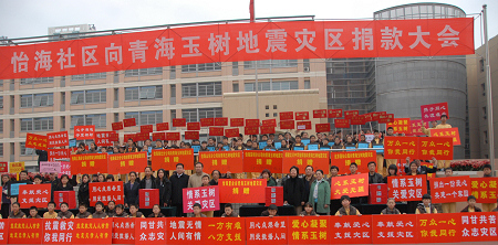 中新網(wǎng)4月23日電 據(jù)北京僑網(wǎng)消息,4月20日上午7時(shí)許,北京市豐臺(tái)區(qū)僑資企業(yè)北京怡海怡海置業(yè)集團(tuán)在怡海社區(qū)隆重舉行抗震救災(zāi)捐贈(zèng)大會(huì)。怡海社區(qū)居民、公司員工、師生共計(jì)5000多人參加此次捐贈(zèng)大會(huì),共同為青海玉樹地震災(zāi)區(qū)奉獻(xiàn)愛(ài)心。中國(guó)僑聯(lián)辦公廳副主任、中國(guó)華僑經(jīng)濟(jì)文化基金會(huì)副理事長(zhǎng)劉奇先生,怡海集團(tuán)董事長(zhǎng)王琳達(dá)女士等參加了本次捐贈(zèng)大會(huì)。