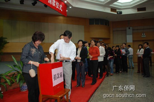 中新網(wǎng)4月26日電 據(jù)廣東僑網(wǎng)消息,4月26日,廣東省僑辦在機(jī)關(guān)二樓禮堂舉行“送溫暖,獻(xiàn)愛心” 捐款儀式,廣東省僑辦主任吳銳成率班子成員及全體干部職工參加捐款活動并帶頭捐款,機(jī)關(guān)干部職工及直屬單位共向?yàn)?zāi)區(qū)捐款40萬元。