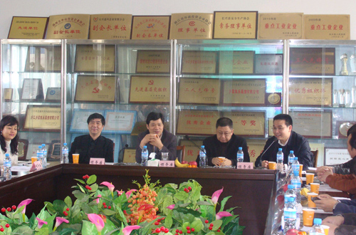 中新網(wǎng)4月27日電 據(jù)湖州市僑聯(lián)消息,近日,浙江省湖州市僑聯(lián)、市僑商會在長興召開“僑資企業(yè)轉(zhuǎn)變經(jīng)濟發(fā)展方式現(xiàn)場交流會”,并實地參觀考察努奧羅(中國)有限公司、浙江多蒙佳樂服飾有限公司等兩家僑商會會員企業(yè)。長興縣縣長章根明、副縣長吳頻、湖州市僑聯(lián)主席孫虎林、副主席黃永南出席會議,二十余家重點僑資企業(yè)代表與會。