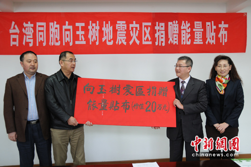 中新網(wǎng)北京4月28日電(記者 張冬冬)臺灣通德興業(yè)股份公司董事長陳前芳28日在此間向中國華僑經(jīng)濟文化基金會捐贈價值20萬元人民幣的能量貼布,用以支援青海玉樹抗震救災(zāi)。